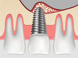 식립하거나 골 이식 후 식립합니다.